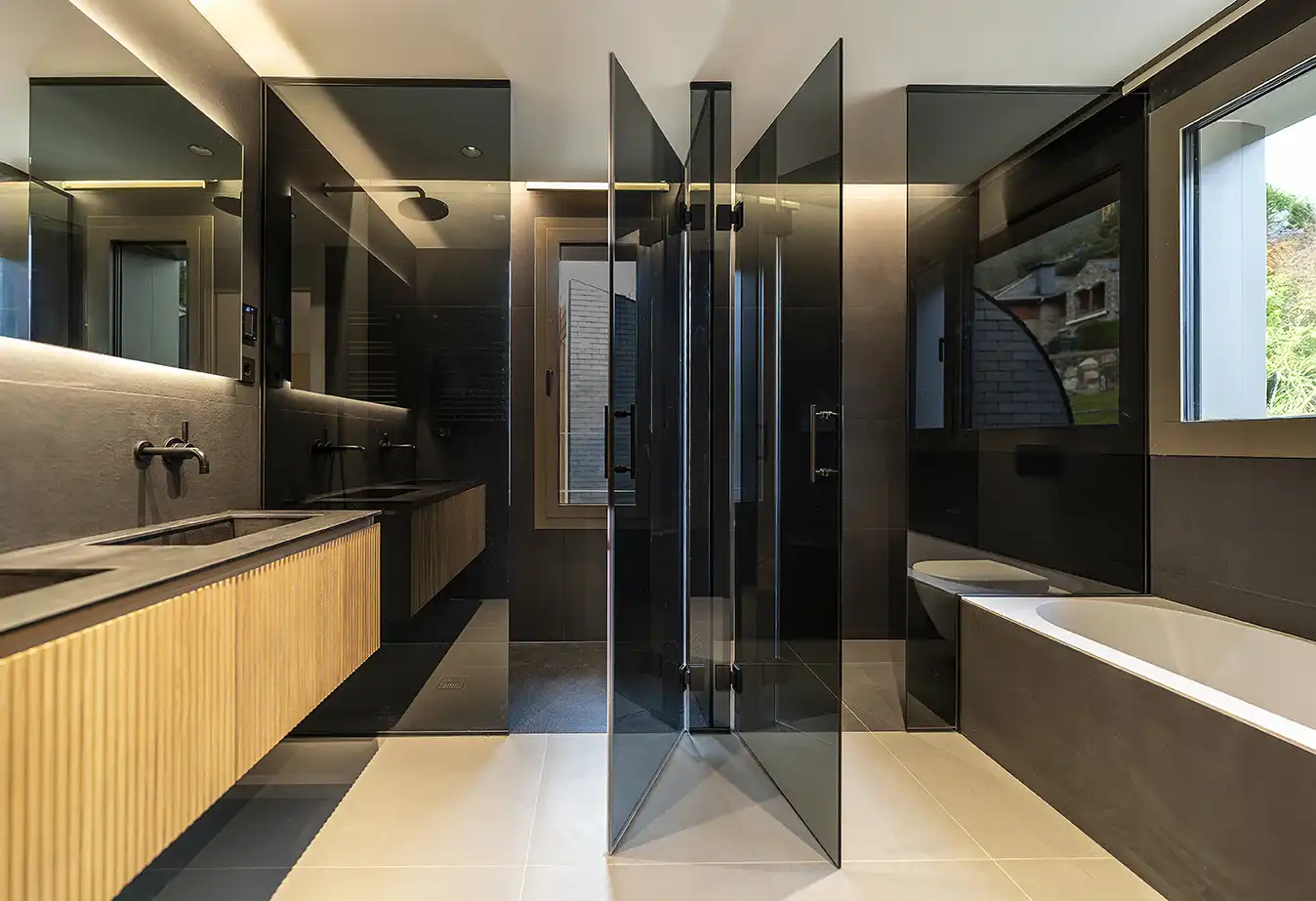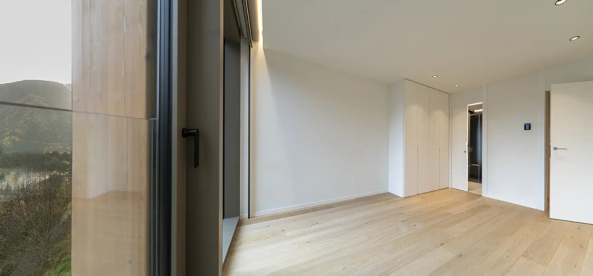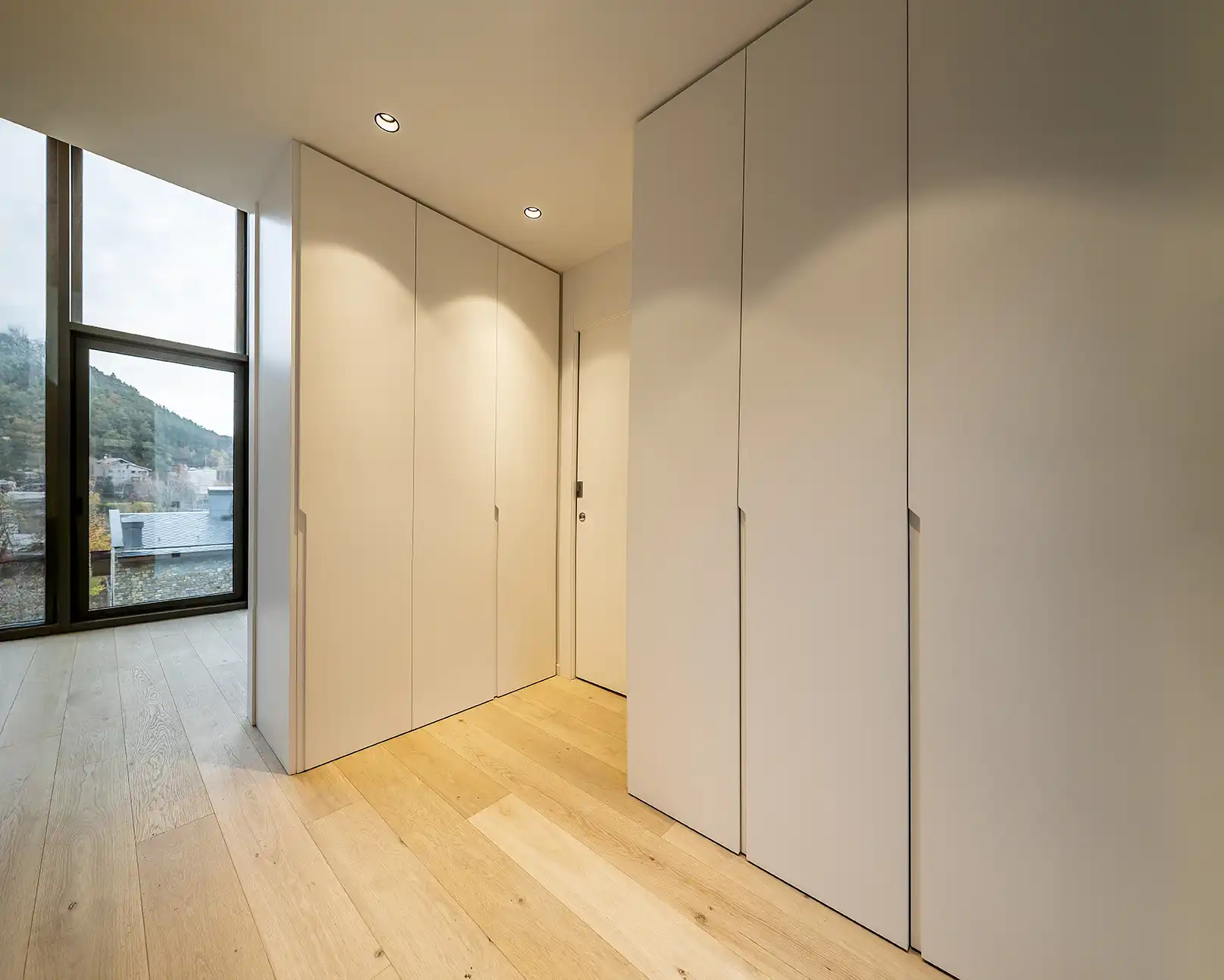 Els armaris encastats, la il·luminació LED integrada i el sistema domòtic configuren una sofisticació tecnològica discreta que s'amaga darrere la calidesa material dels espais.