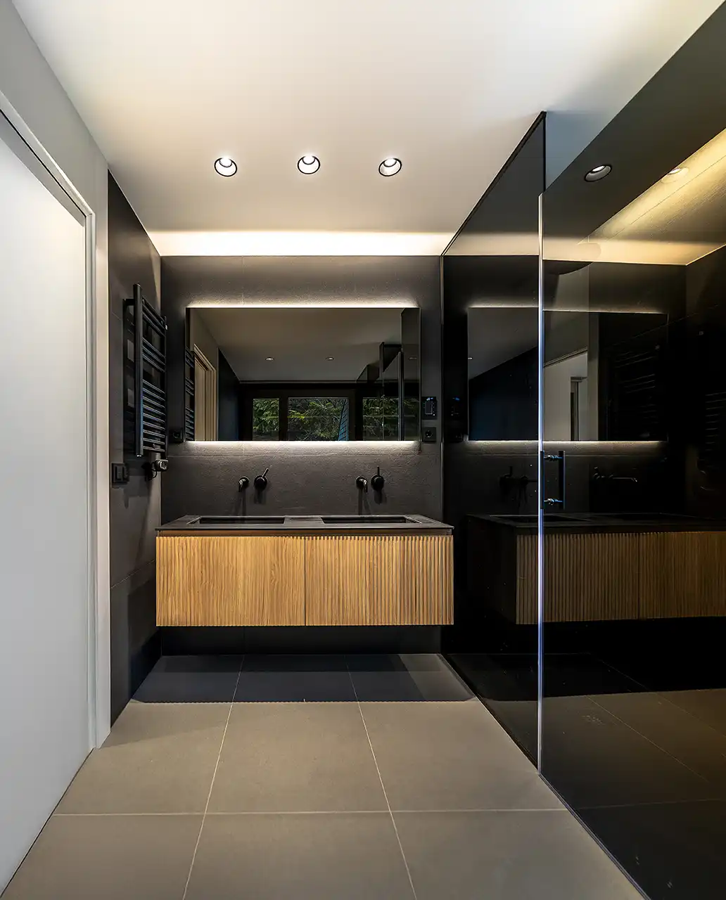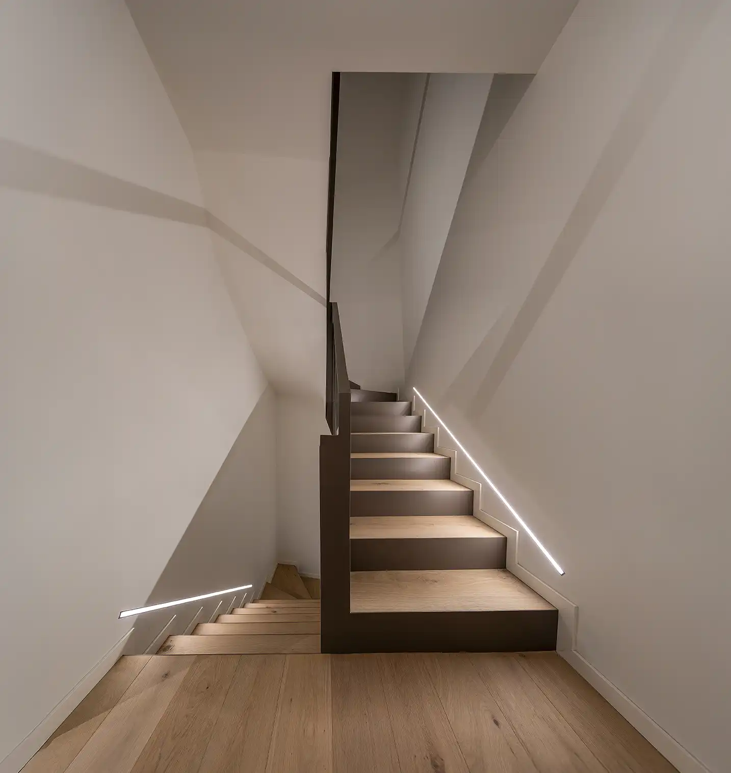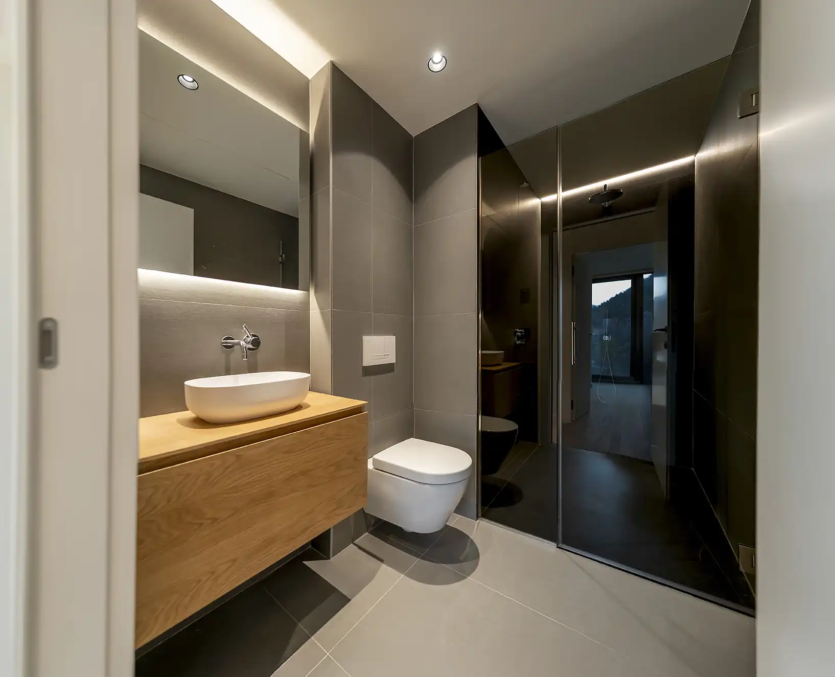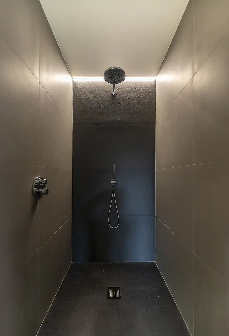 Els armaris encastats, la il·luminació LED integrada i el sistema domòtic configuren una sofisticació tecnològica discreta que s'amaga darrere la calidesa material dels espais.