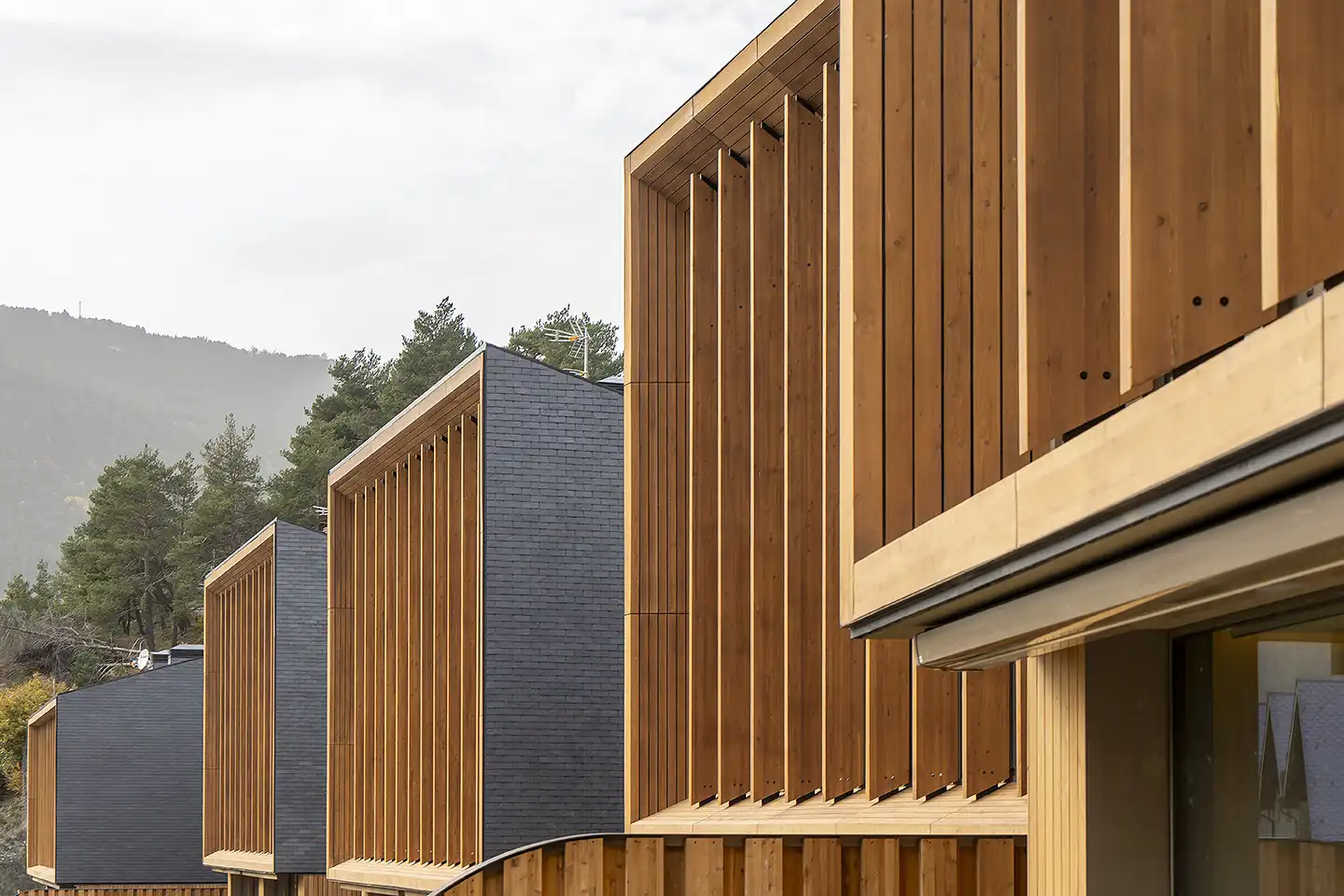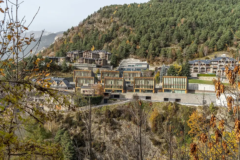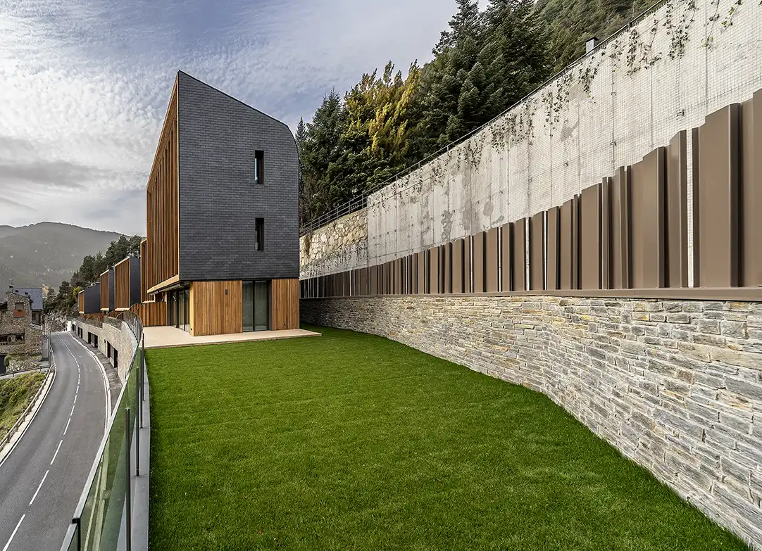 El projecte Aldosa Village, es configura com una meditació construïda sobre la inserció d'un teixit residencial en el pendent abrupte de la vall andorrana. Situats entre l'Aldosa i Anyós, els setze habitatges —organitzats en catorze cases adossades i dos dúplex amb jardí, complementats per un àtic— no aspiren a la monumentalitat individual sinó a una articulació col·lectiva que conviu amb la topografia preexistent.