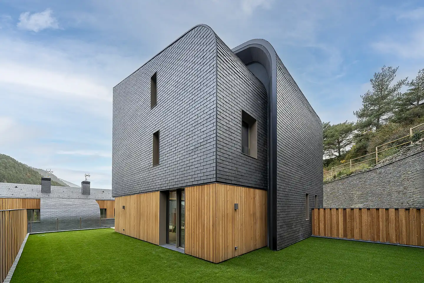 Aldosa Village es presenta com un assaig contemporani sobre l’habitar en territori de muntanya, on tradició constructiva alpina i sofisticació actual troben síntesi.