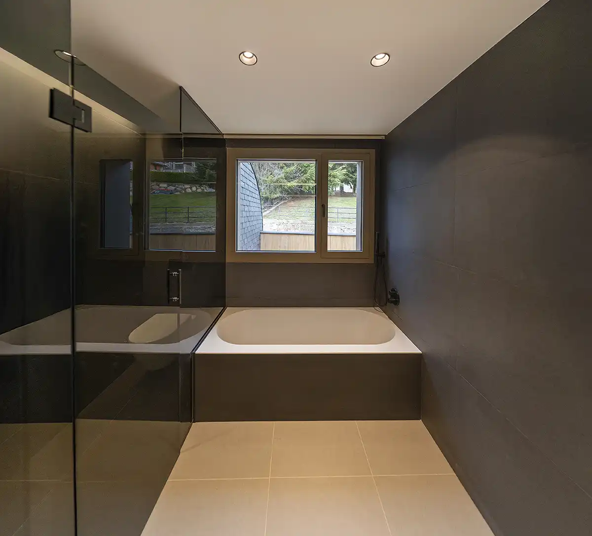 El vidre, en grans superfícies, estableix la dialèctica necessària entre protecció i obertura, entre refugi i mirador. Les cobertes inclinades reconeixen la gramàtica vernacular sense renunciar a la depuració formal contemporània.