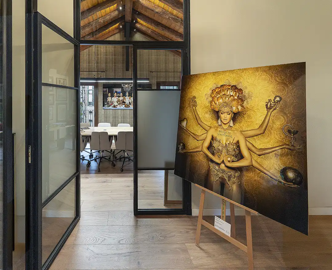 Shangti exposa 12 obres que sacsegen consciències. Les seves creacions, plenes de color, simbolisme i provocació, converteixen les oficines d’Andorra Sotheby’s en un espai de reflexió i admiració.